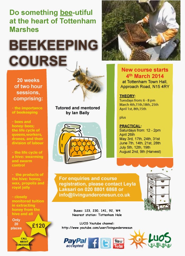 We have a new 20 week Bee Keeping course coming up! Starts 4th March at Tottenham Town Hall, Approach Road, N15 4RY. Get in touch on 020 8801 6868 for more details.